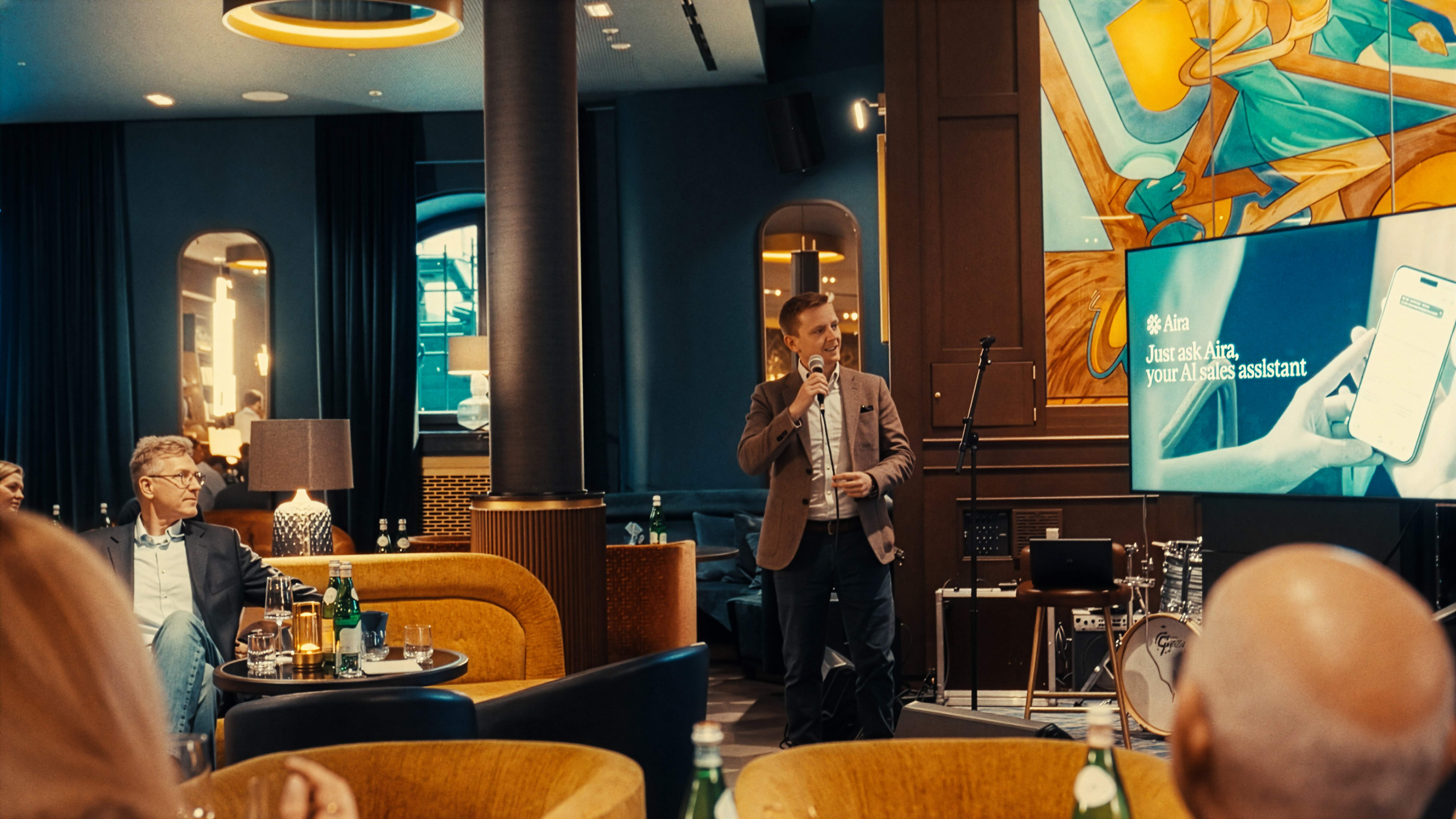 On April 8th, CEOs, founders, and sales professionals came together at Bar Montez, inside Rosewood Munich and became among the first in Germany to see what we've been building. It was an evening of great conversations, champagne, and a first look at Aira.